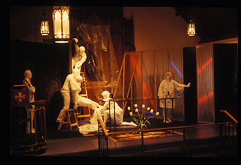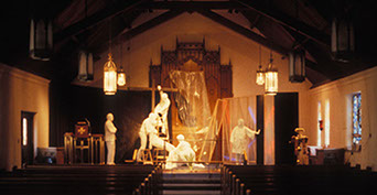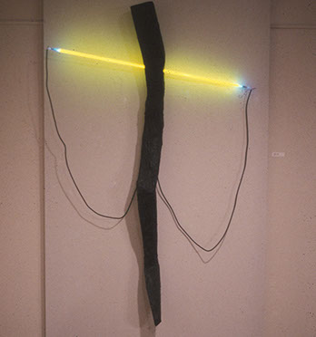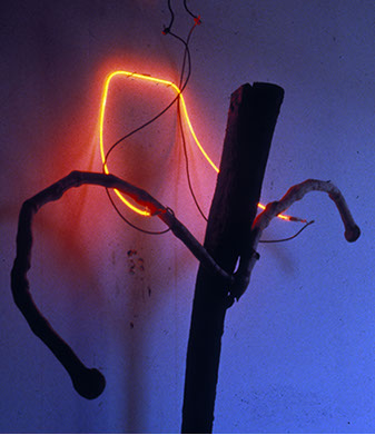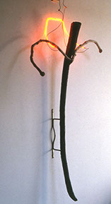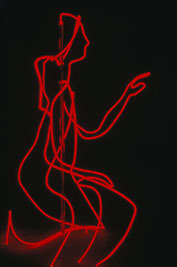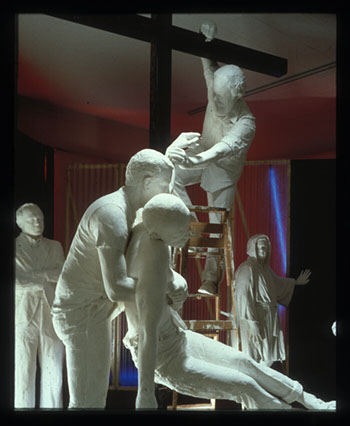 Cast hydrocal, steel, wood, fiberglass, neon, cloth, figure life size, cross is 10′