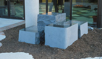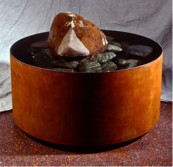 Corten steel, limestone, apple wood, polyurethane truck bed liner