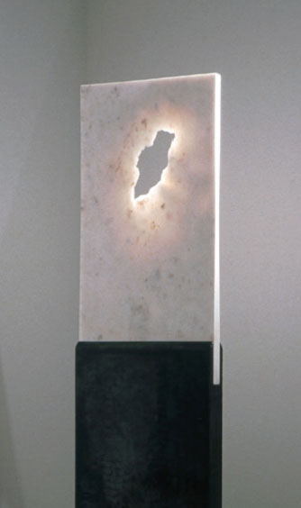 Like wood, stone is an archetypal sculptural material, with a history that stretches back to the earliest human artifacts. The critic Robert Hughes once called marble a medium of “public address” because of its wide use in civic spaces. A piece like Book of Light recalls that history in form, but also exposes a hidden translucency inherent in some marbles, which is only seen when they are carved “thin”.