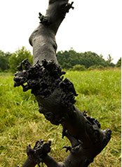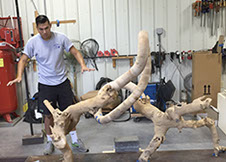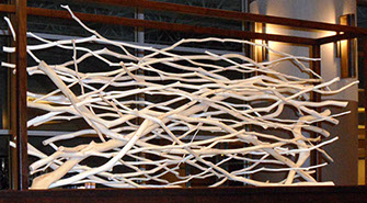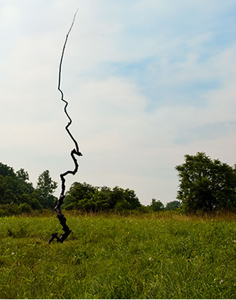 With the exception of Beech Float, all of the pieces are constructed from apple limbs, which were harvested, dried, joined, and shaped. The original forms of the limbs were the result of pruning, as well as each tree’s responses to wind, weight, and light. In the assemblies, these innate characteristics are used for sculpturally expressive and evocative purposes. Some, like Straight Line to Heaven were coated with the industrial material commonly known as “truck bed liner”. In addition to providing color and texture, the coating makes the pieces weather proof. The piece Small Worlds won 1st place Sculpture in The Art of the State exhibit at the PA State Museum in 2010.